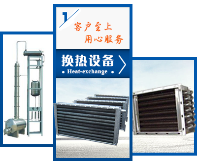 本公司充分與大專院校科研機構協同研發創新形成了以換熱設備為主體的多種系列產品。主要產品有螺旋板式換熱器(Ⅰ、Ⅱ 、Ⅲ型), 空氣換熱器(散熱器),空氣加熱器,空氣熱交換器,空調換熱器(表冷器),管殼式換熱器(列管)及各類非標設備等,為化工、紡織印染、涂裝烘漆及城市供暖浴室、溫水游泳館等配套提供換熱設備,取得了良好的社會效益和經濟效益,贏得了廣大用戶的認同。